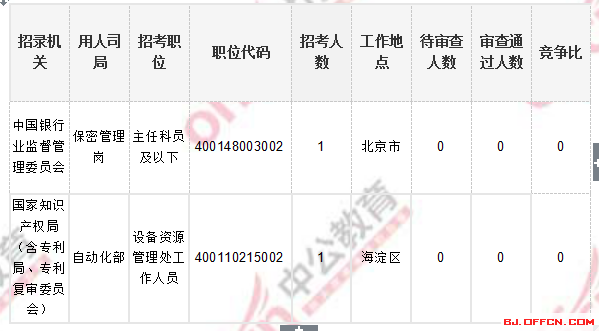 截止到5日16時,工作地點在北京的職位共有2個職位無人報考,下面是無人報考職位一覽表,中公網(wǎng)校專家建議廣大考生多關(guān)注一些較冷職位,避免激烈競爭,結(jié)合自身條件,找到屬于自己的職位。