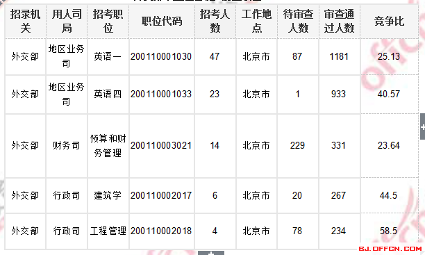 外交部審查通過最多前五職位