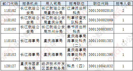 截止到5日16時,工作地點(diǎn)在重慶的職位共有6個無人報(bào)考,占全部職位的2.6%。無人報(bào)考職位為在長江海事局、重慶市國家稅務(wù)局、長江航運(yùn)公安局招錄的職位。這些職位的招考條件都相對嚴(yán)格。