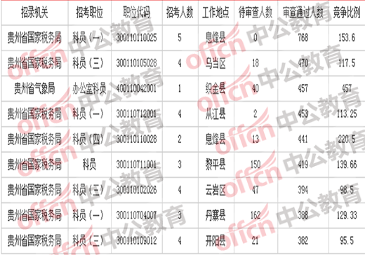 [5日16時]2018國考報名數(shù)據(jù):貴州27901人過審 最熱職位457:1
