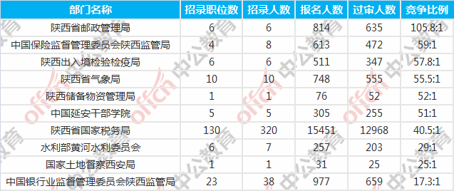 陜西國考報(bào)名人數(shù)最多的十大部門