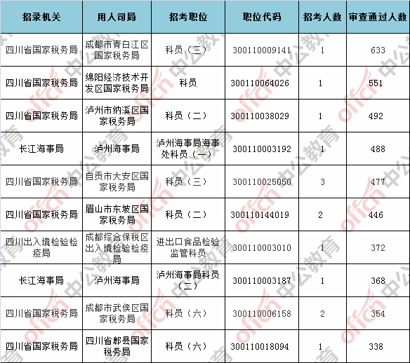 第五日報名通過審核人數(shù)前十的職位主要集四川省國家稅務局等部門,具體信息如下: