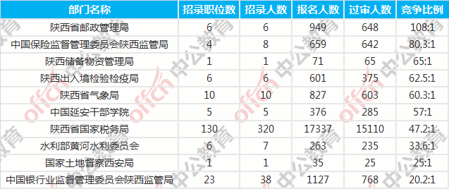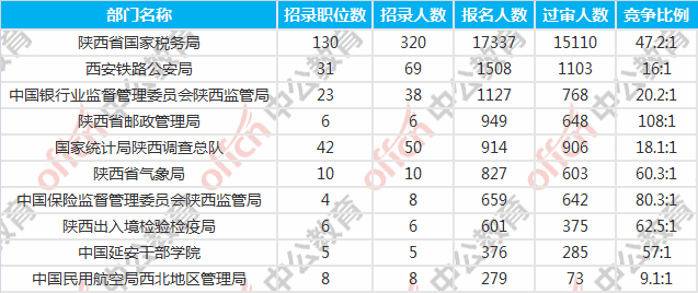 陜西國(guó)考報(bào)名人數(shù)最多的十大部門(mén)