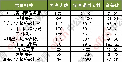 截止到6日16時,通過審核人數(shù)前三位的部門依次是:廣東省國家稅務(wù)局、深圳海關(guān)、廣東出入境檢驗檢疫局,三部門通過審核總?cè)藬?shù)達(dá)54700人,占通過審核總?cè)藬?shù)的60%。