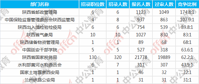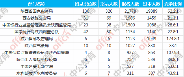 陜西國考報(bào)名人數(shù)最多的十大部門