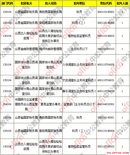 截止到11月7日16時,工作地點在山西的職位共有8個無人報考,占全部職位的0.04%。下面是無人報考職位一覽表,中公網(wǎng)校專家建議廣大考生多關(guān)注一些較冷職位,避免激烈競爭,結(jié)合自身條件,找到屬于自己的職位。