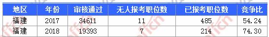 截至11月7日16時,據(jù)中公網(wǎng)校統(tǒng)計,國考職位中工作地點在福建的職位4639人待審 ,19393人通過審核,共報名24032人,其中有7個職位無人報名,平均競爭比例為74.30:1。