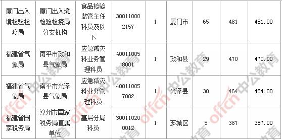 報名通過審核人數(shù)前十的職位主要集中在福建省國家稅務局、廈門出入境檢驗檢疫局、廈門海關,具體信息如下: