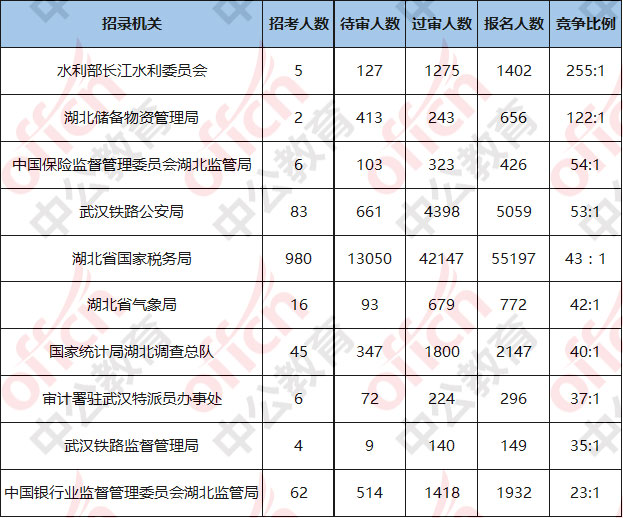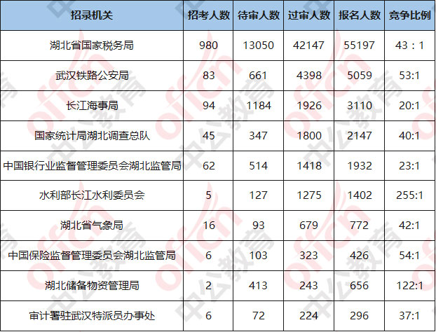 湖北報名競爭最激烈的十大部門