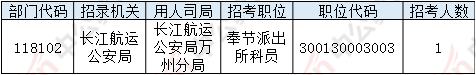 截止到7日16時,工作地點(diǎn)在重慶的職位僅余1個無人報(bào)考,為長江航運(yùn)公安局萬州分局奉節(jié)派出所科員。中公網(wǎng)校專家分析,該職位的招考條件相對嚴(yán)格,是該崗位無人報(bào)考的原因之一。下面是無人報(bào)考職位一覽表: