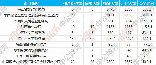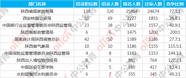 陜西國考報(bào)名人數(shù)最多的十大部門
