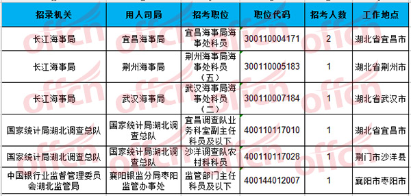 湖北無人報考職位一覽表(截止11月8日16:00)