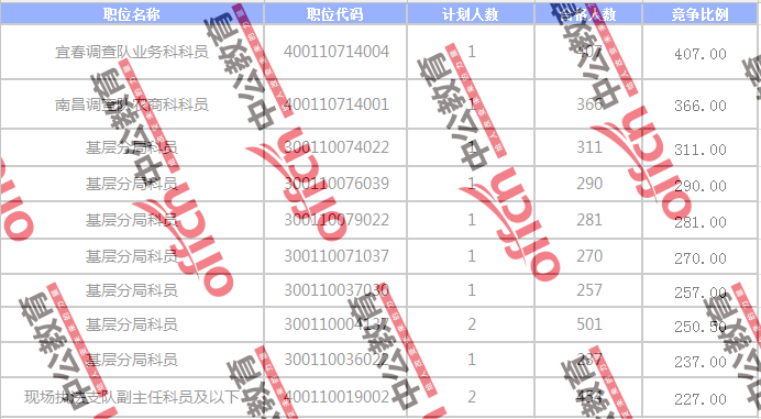 截止到8日17:30時,競爭比例的職位為國家統(tǒng)計局江西調(diào)查總隊國家統(tǒng)計局江西調(diào)查總隊宜春調(diào)查隊業(yè)務(wù)科科員一職,招錄1人,截止到8日17:30時通過人數(shù)為407人,競爭比為407:1
