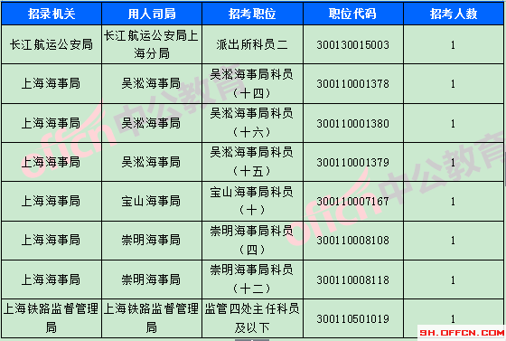 截止到8日17:30時,工作地點在上海的職位共有8個無人報考,占全部職位的2.48%。下面是無人報考職位一覽表,上海中公網(wǎng)校專家建議廣大考生多關(guān)注一些較冷職位,避免激烈競爭,結(jié)合自身條件,找到屬于自己的職位。
