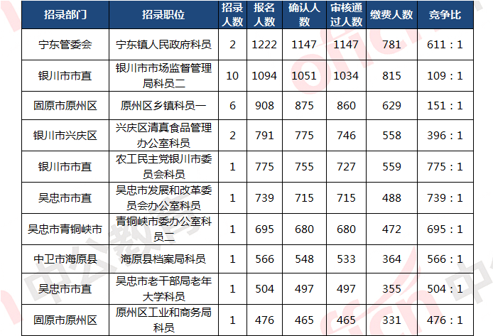 2018寧夏公務員考試報名人數(shù)統(tǒng)計(截止3月31日10:00)