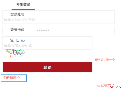2、出現以下頁面,進行考生信息的注冊,如圖,點擊“注冊新用戶”