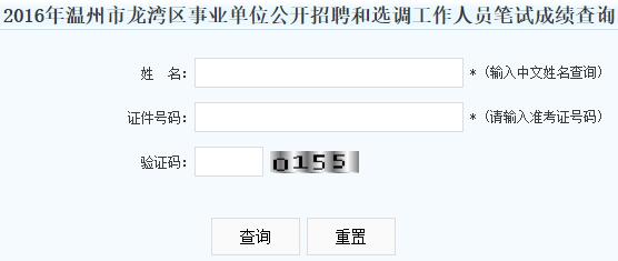 2016浙江溫州龍灣區(qū)事業(yè)單位招聘和選調(diào)筆試成績查詢?nèi)肟?/h1>