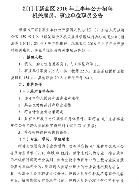 2016上半年廣東江門市新會區(qū)招聘機關雇員、事業(yè)單位職員公告【222人】