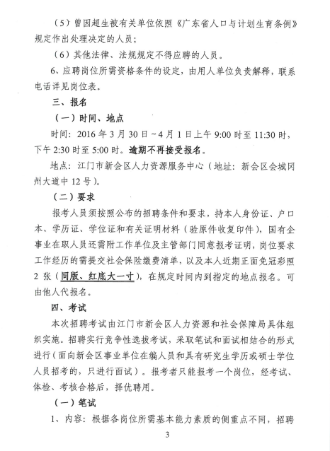 2016上半年廣東江門市新會區(qū)招聘機(jī)關(guān)雇員、事業(yè)單位職員公告【222人】