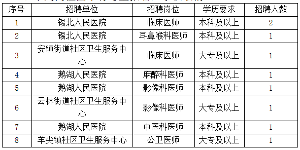 三、部分緊缺崗位因報(bào)名人少確實(shí)無法形成競爭的,按以下辦法處理:東亭街道社區(qū)衛(wèi)生服務(wù)中心和云林街道社區(qū)衛(wèi)生服務(wù)中心同意核定2個(gè)臨床(全科)醫(yī)師崗位;羊尖鎮(zhèn)社區(qū)衛(wèi)生服務(wù)中心和錫北鎮(zhèn)社區(qū)衛(wèi)生服務(wù)中心同意核定1個(gè)中醫(yī)科醫(yī)師崗位。凡報(bào)名上述單位相應(yīng)崗位的考生,根據(jù)考試總成績,排名在前的考生可自主選擇與其中1家單位簽約。
