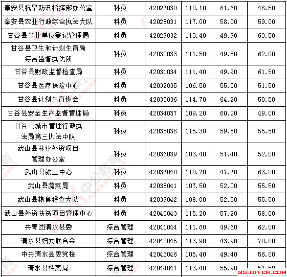 溫馨提示:根據(jù)甘肅省公務(wù)員考試招錄公告得知,甘肅省公務(wù)員面試人員確定方式為招錄單位在資格復(fù)審的基礎(chǔ)上,根據(jù)應(yīng)試人員筆試總成績(jī)從到低分的順序確定參加面試人員(筆試有一門缺考或一門成績(jī)?yōu)榱阏撸坏么_定為面試人選)。省、市州考錄辦分別按職位筆試成績(jī),從到低分的順序,依次按計(jì)劃招錄人數(shù)與面試人數(shù)1∶3的比例確定面試人員。所以并沒有實(shí)際意義上的分?jǐn)?shù)線,以下內(nèi)容僅供參考。