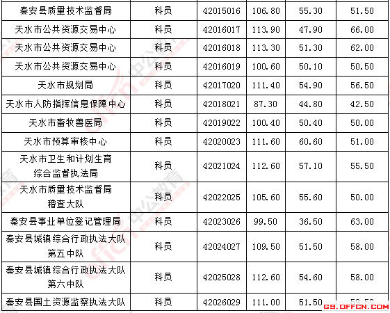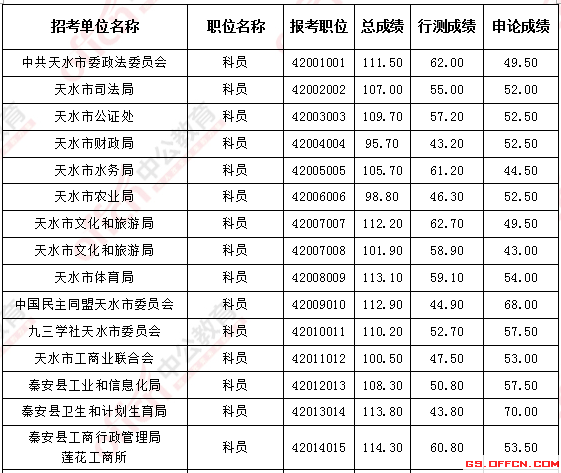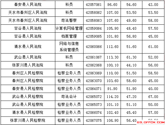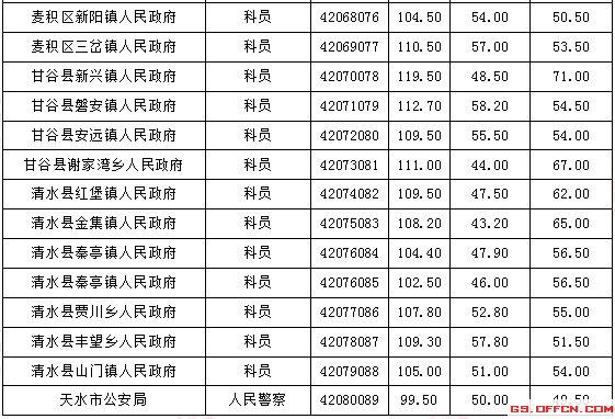 2017年甘肅天水公務(wù)員面試入圍最低分?jǐn)?shù)線