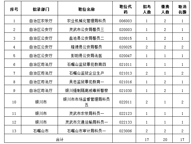 2018寧夏公務(wù)員部分職位降低開(kāi)考比例或取消部分招考名額公告