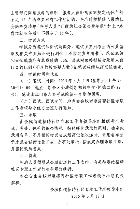 2015年廣東省江門(mén)新會(huì)區(qū)會(huì)城街道社區(qū)工作者招聘35人公告