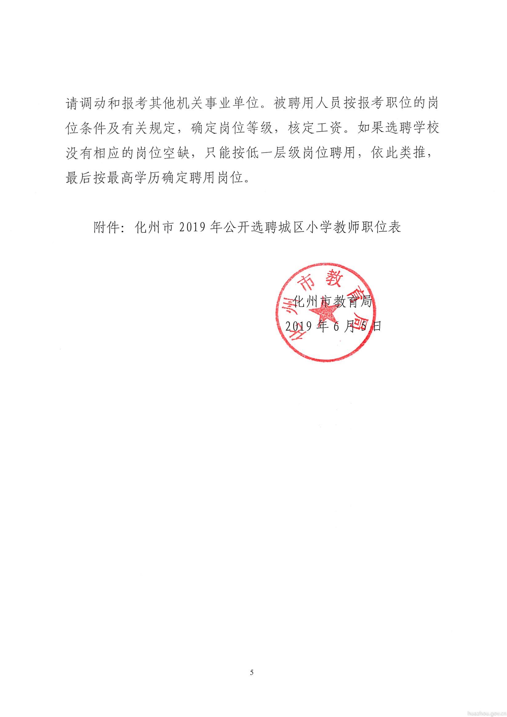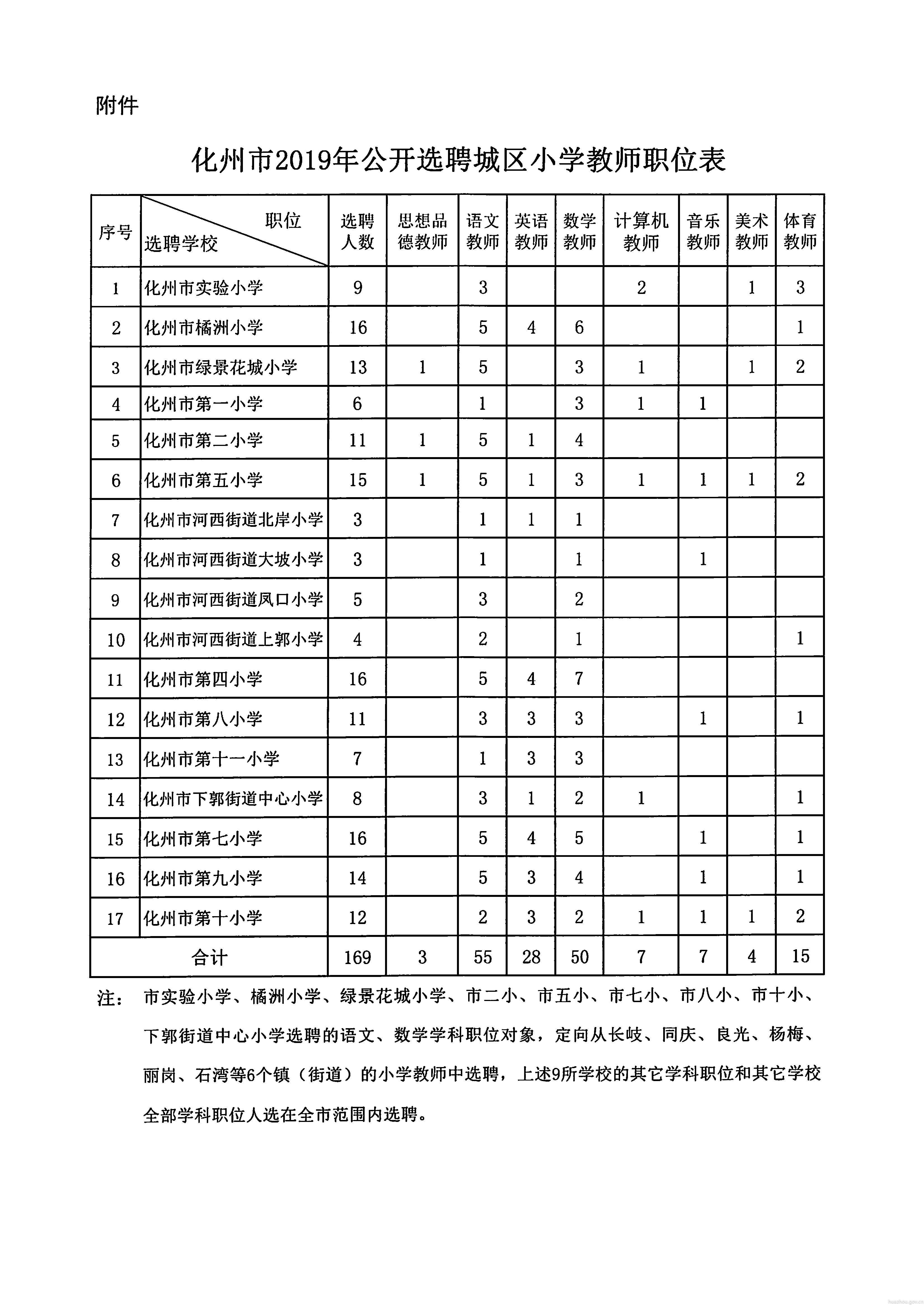 原公告:化州市2019年公開選聘城區(qū)小學(xué)教師公告