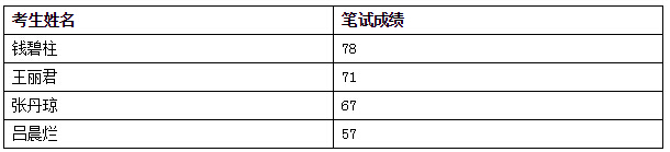 共4位考生參加了筆試,前3名入圍面試。筆試成績公布如下:(如有異議可前來參閱考卷)