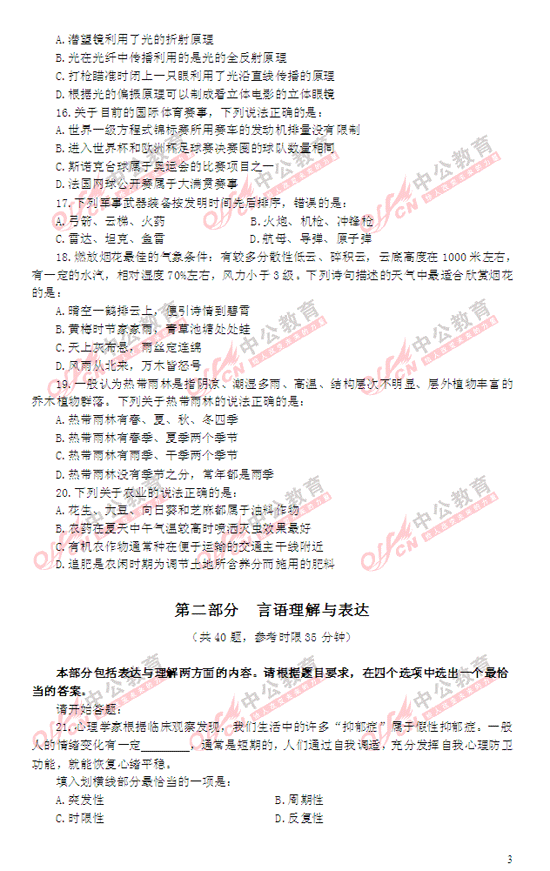 2014年國家公務員考試行測匯總