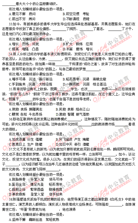 2012年福建秋季省考行測(cè)