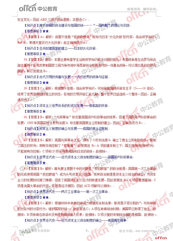 2017年江西教師招聘《初中歷史》試題答案及解析