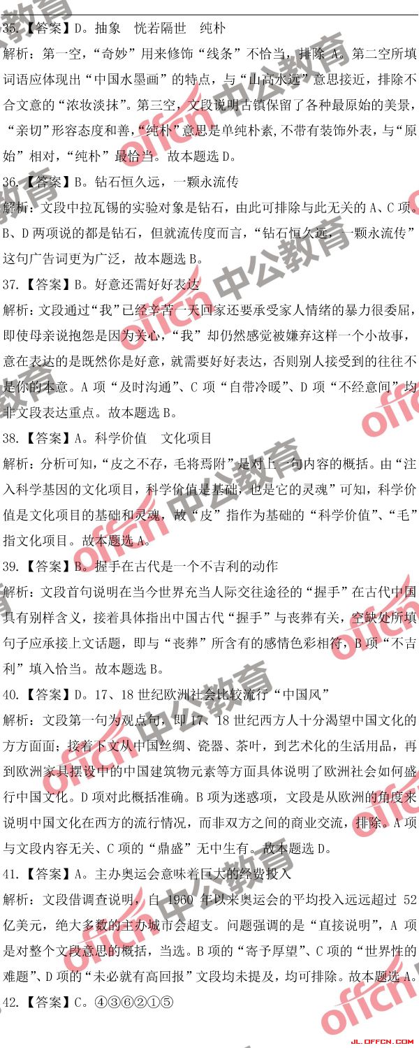 2018吉林公務(wù)員考試行測(cè)(乙)歷年參考答案及解析