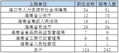 2018海南公務(wù)員考試海口市計劃招錄242人,124個職位,較去年有所減少!